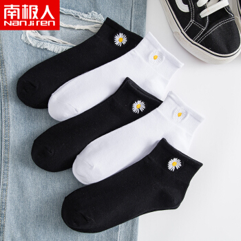 南極人の5足は清新な文芸の風の女史の靴下の女性の靴下の長い靴下の女性GD小さい菊は刺繍の秋のレジャーの綿の靴下の長靴の白黒を飾ります。