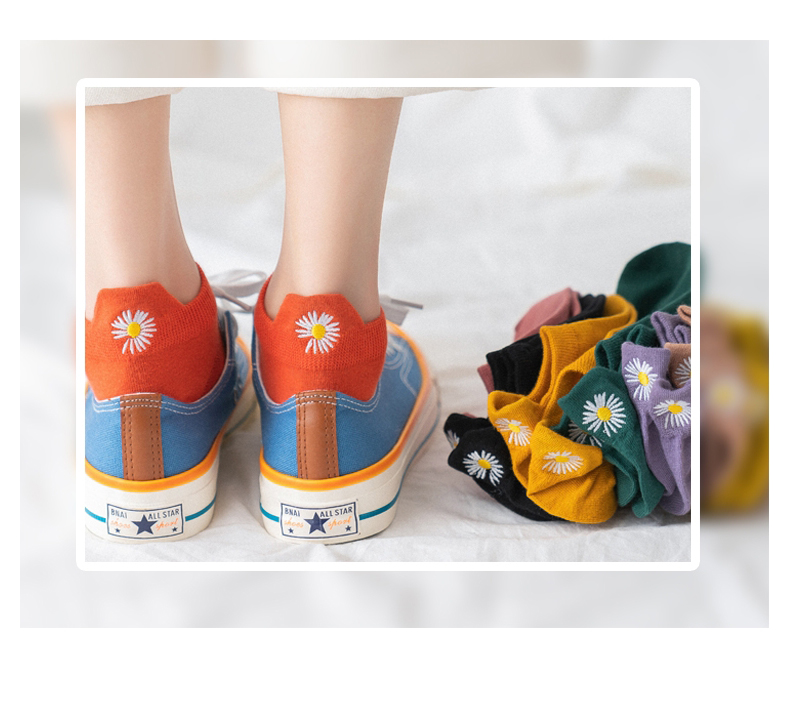 南極人の10足は新鮮なマカロン色の女性の靴下の女性の靴下の女性の潮流のヒナギクの刺繍の船の靴下の女性の秋季の浅い口が高くて耳を持って保護しますと短い靴下の日係の学院の風