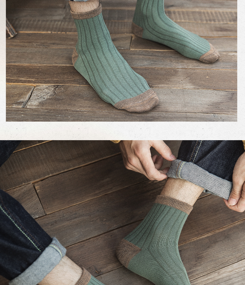 南極人の10足の服は秋のストッキング男性の靴下と冬のストッキングをつなぎます。高い筒の保温性とカジュアルな綿靴下の復古色の糸は汗を吸います。