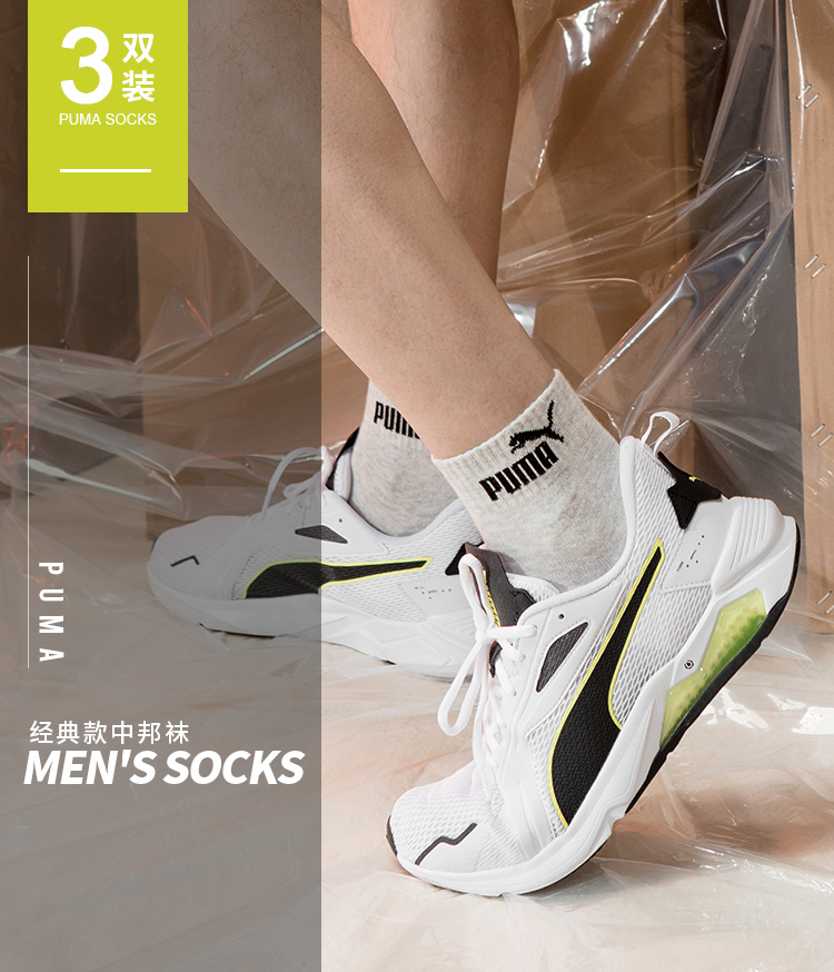PUMAプーマ靴下男性スポーツ四季通用アイテムカジュアソーックス3足黒灰セットワンセイズ(39/42)