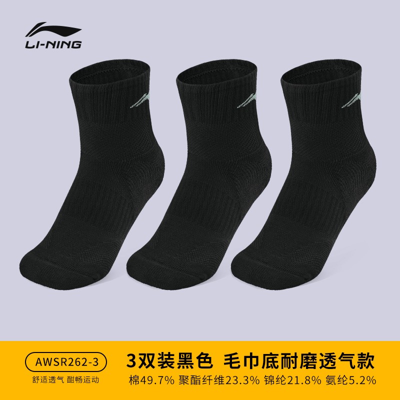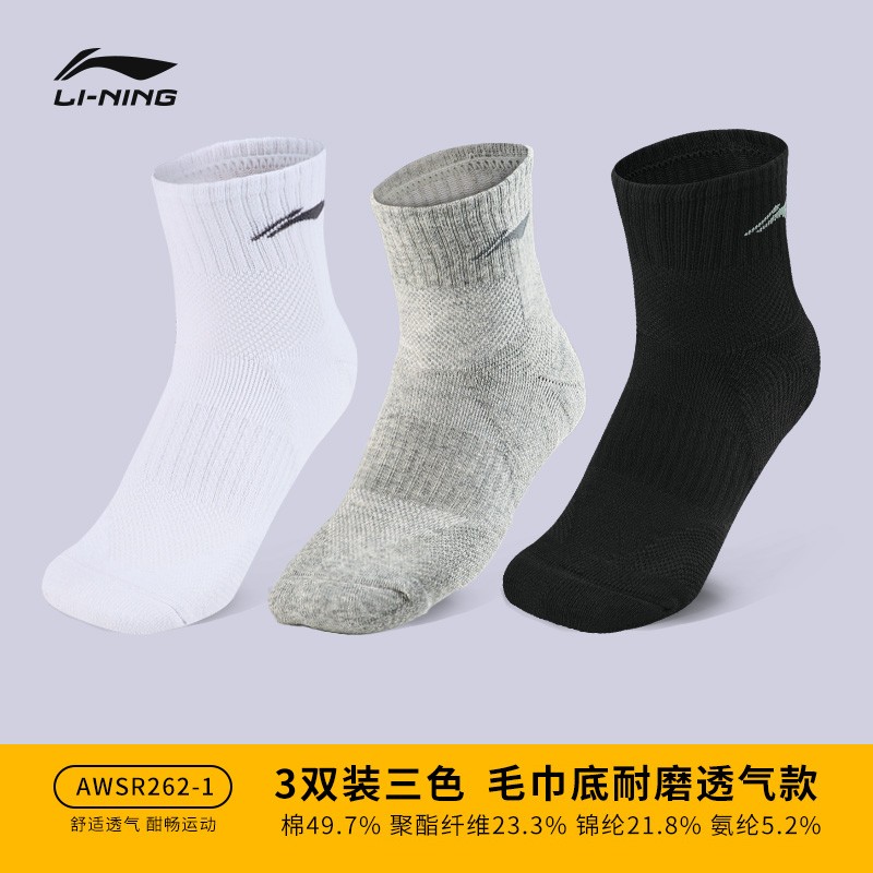 李寧のスポーツ靴下の3足の靴の下のタオルの底の中筒の男女の通気性と滑り止めの耐磨耗の綿の靴下のランニングのバスケットボールの靴下のカジュアルの靴下の3足の服【白い白】AWSR 262-2 XL:42-46ヤード