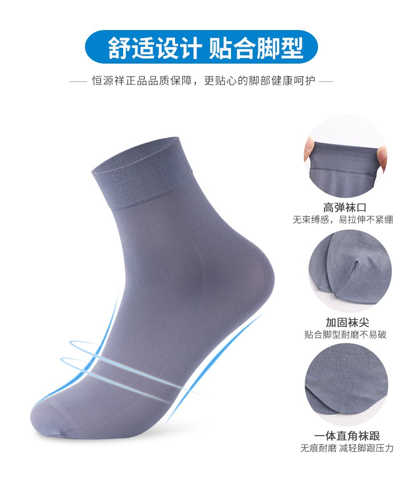恒源祥男性ストッキング夏季超薄型冰丝透气鞋下男性夏季丝光中筒薄款男性ストッキング黒2チベット青2深灰2浅灰2白2 10双装【写真価格ブランドオファー】-