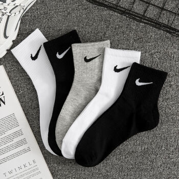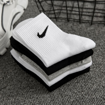 男子春季棉袜5双鞋下秋和冬款勾勾勾袜棉男女同款中长筒学生运动袜ins潮百搭【5双装】白+白+白+白+白+白中筒